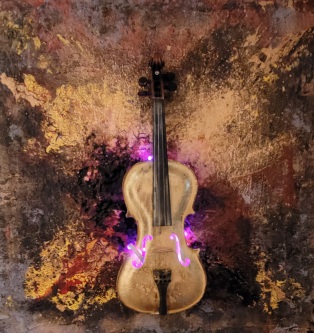 beleuchteter Geige als Klangkörper